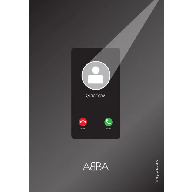An image inspired by ABBAs song ‘Super Trouper’. The lyric lines 'Super Trouper' refers to stage spot lights that follow a lead player. The phone image is a modern take on the line in the song “I was sick and tired of everything; When I called you last night from Glasgow” ABBA fans will recognise this!
