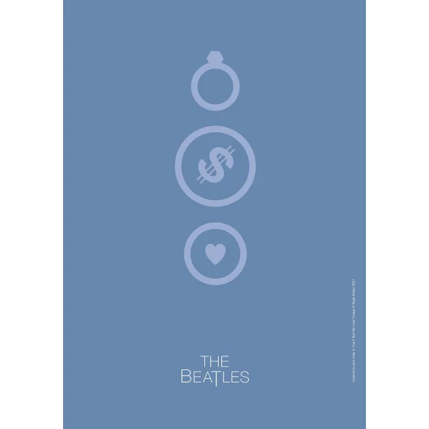 Inspirado por la canción de The Beatles“No se puede comprar amor”. La línea de la letra “Te daré todo lo que tengo para dar; Si dices que también me amas” Presenta íconos de anillo de diamante, dólar (signo $ tachado), corazón de amor. Los anillos de diamante y el dinero no pueden comprarme amor.
