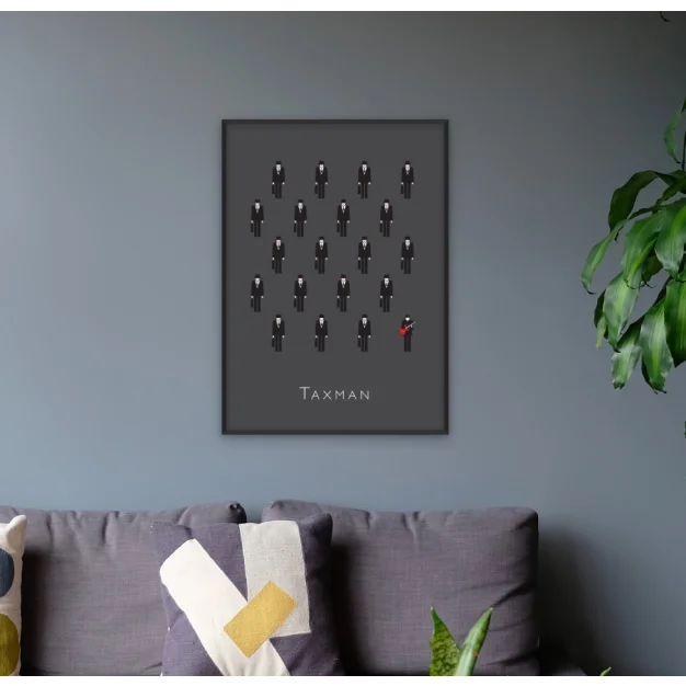 Cette œuvre humoristique représente les dix-neuf petits percepteurs d'impôts avec leurs mallettes et un Beatle solitaire (probablement un John Lennon droitier !). Le département britannique Inland Revenue à l'époque avait un personnage de dessin animé nommé Hector qui était censé rendre le système fiscal accessible et amical !