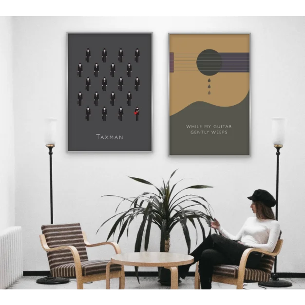 Voir la photo ci-dessous de moi dans la maison d'enfance de George Harrison à côté de mes impressions encadrées de ‘Taxman’ et ‘While My Guitar Gently Weeps’